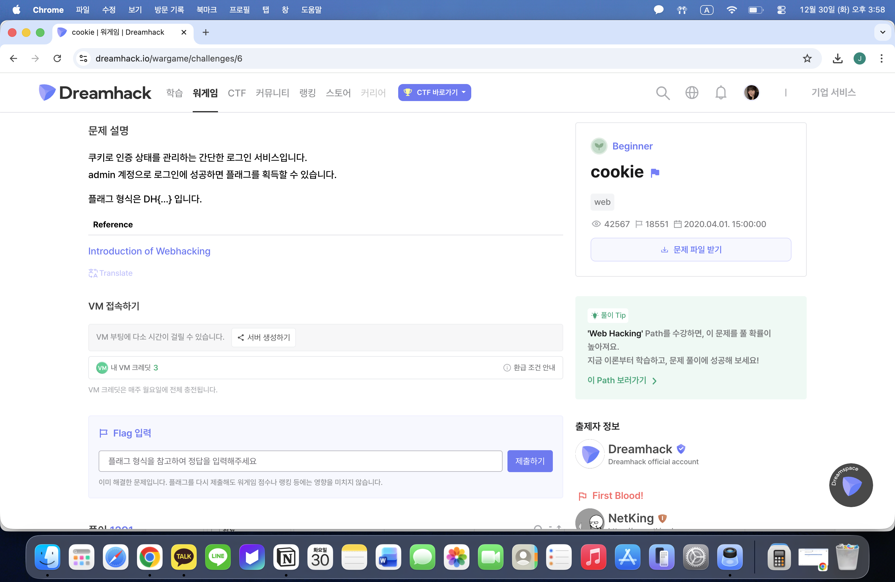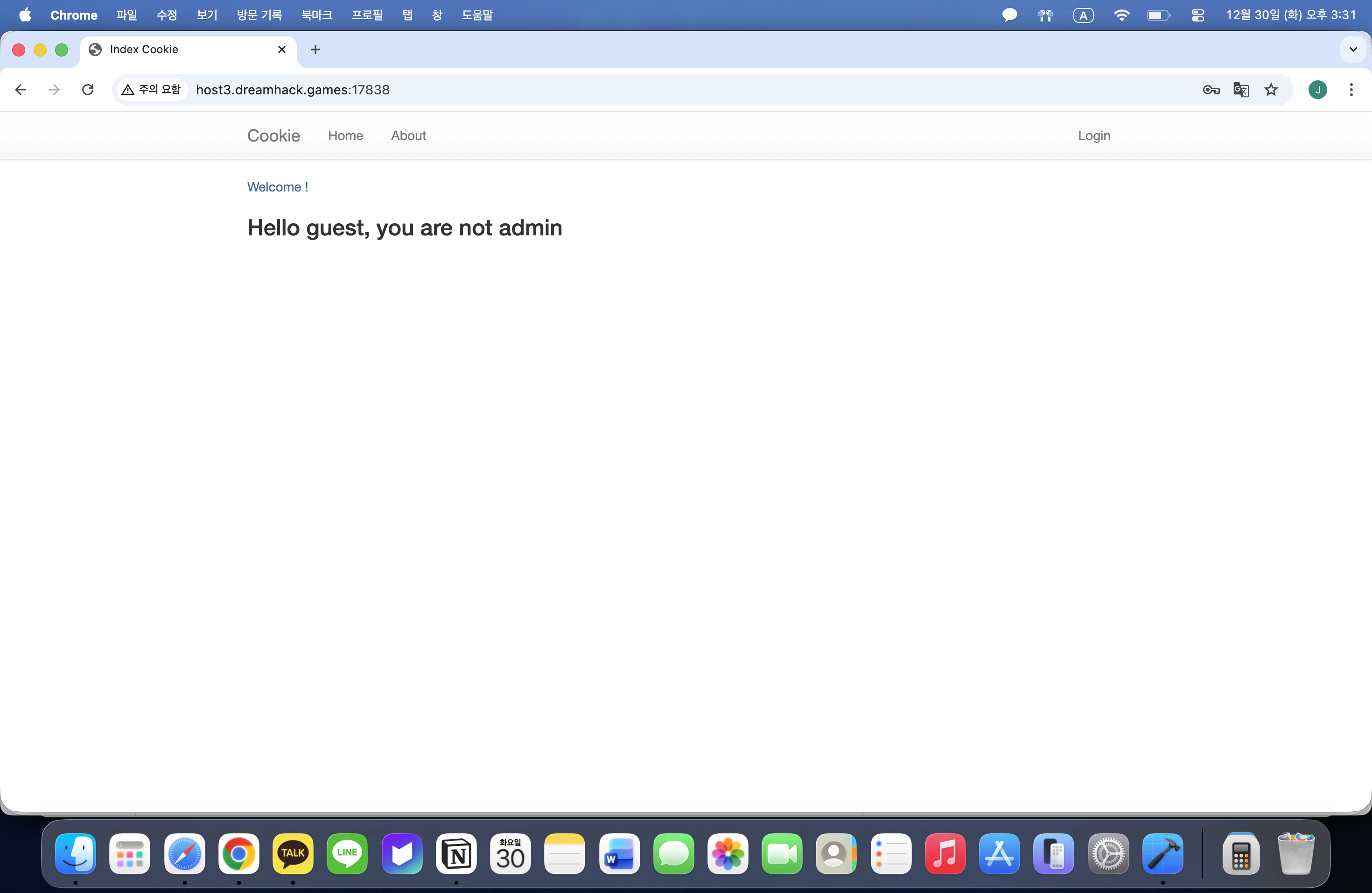 Dreamhack에서 cookie문제 설명에 쿠키로 인증 상태를 관리하는 로그인 서비스라는 설명이 있다. cookie는 개발자 도구에서 쉽게 확인이 가능한 것을 생각한다.