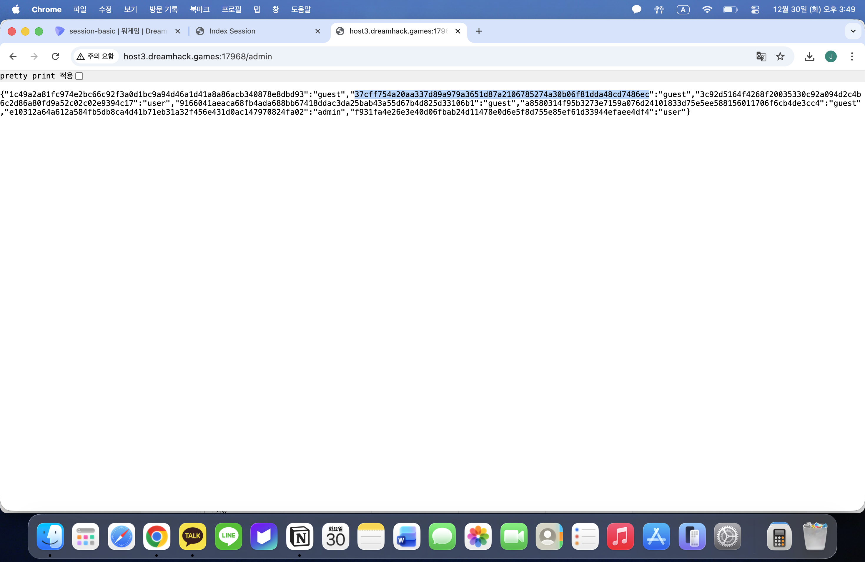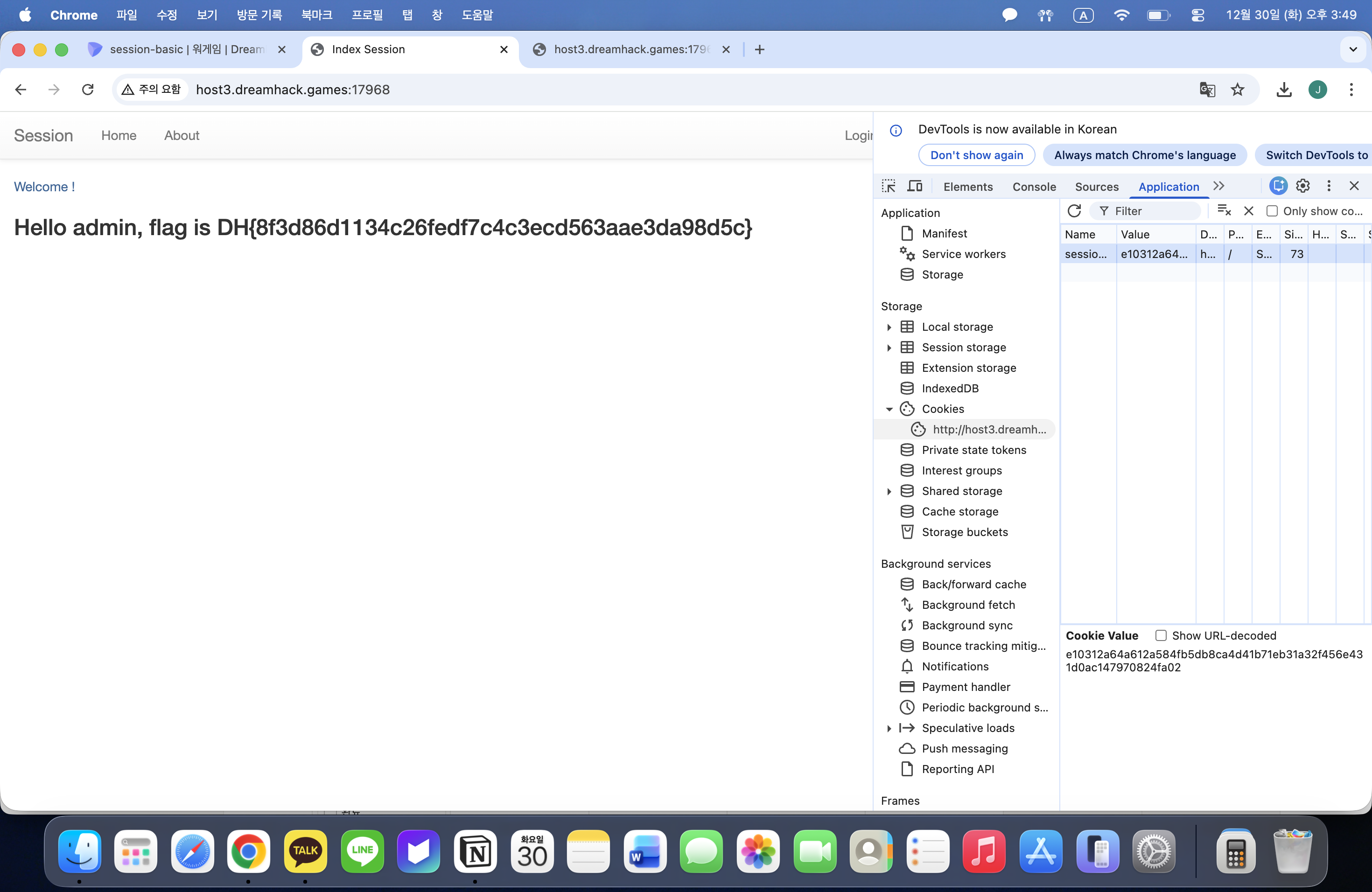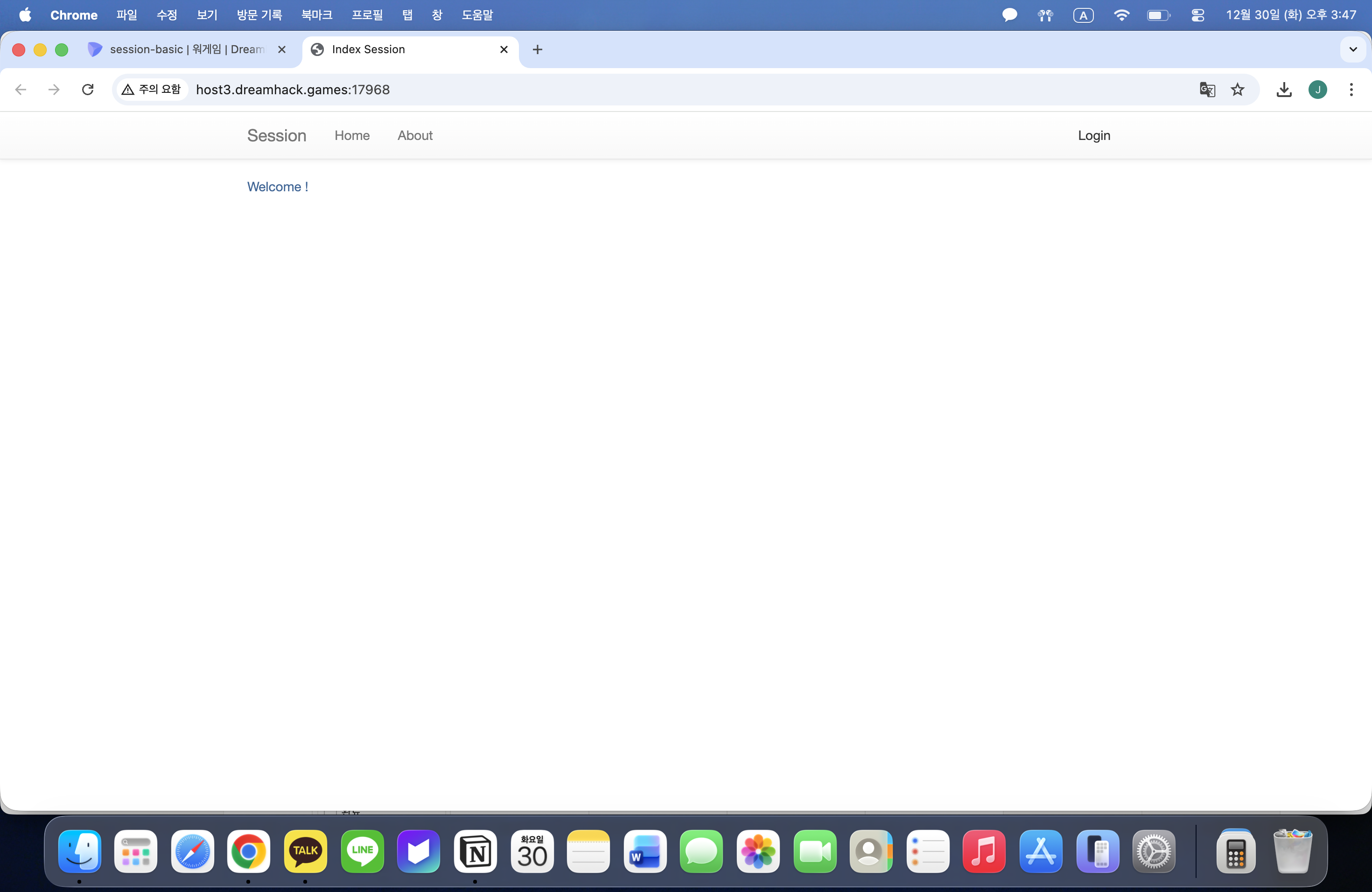 session값을 변조하는 문제였으며, 로그인 시 문제가 있음을 확인하고 브라우저에서 자체적으로 취약점을 알려준다.