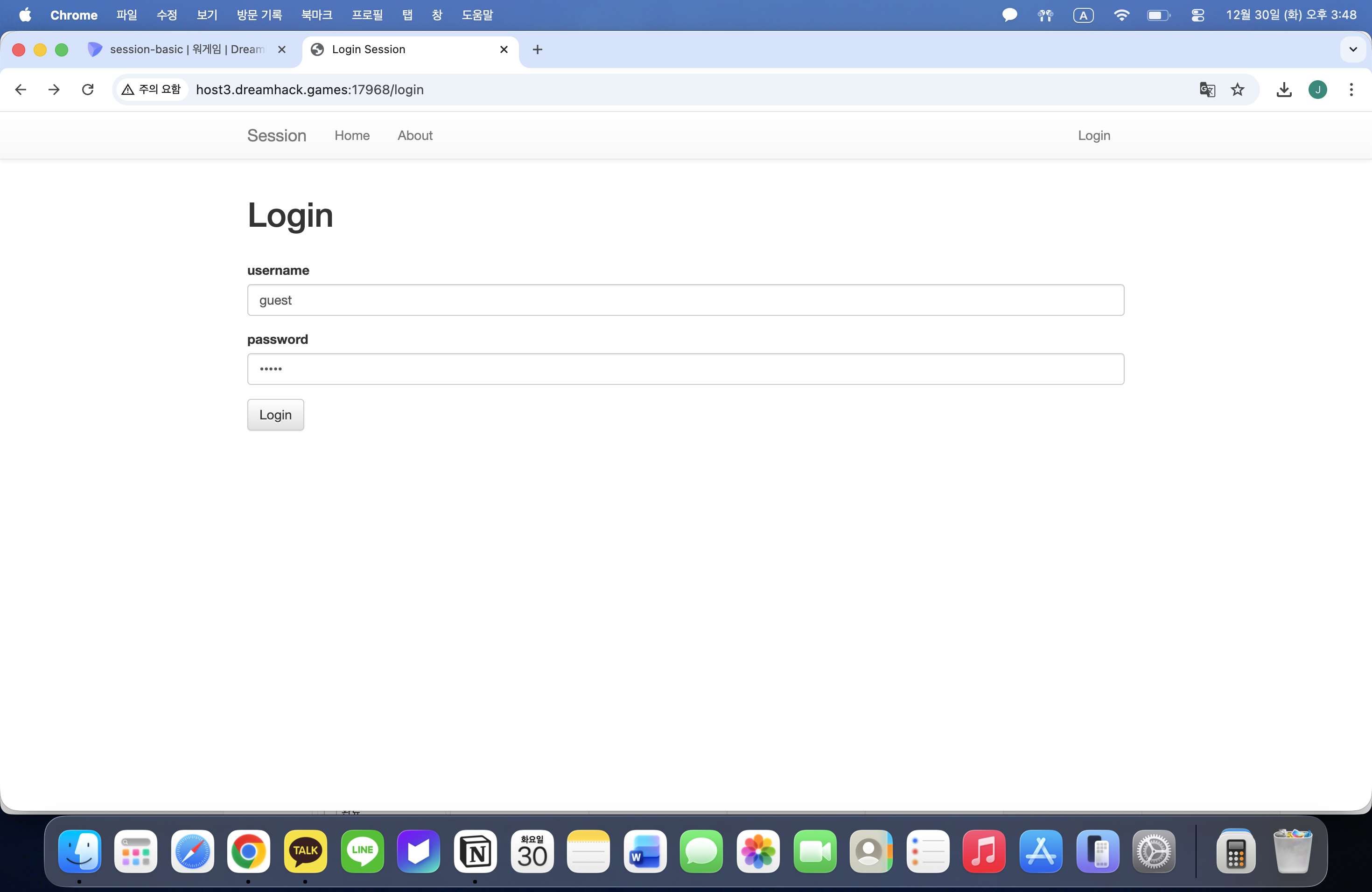 session값을 변조하는 문제였으며, 로그인 시 문제가 있음을 확인하고 브라우저에서 자체적으로 취약점을 알려준다.