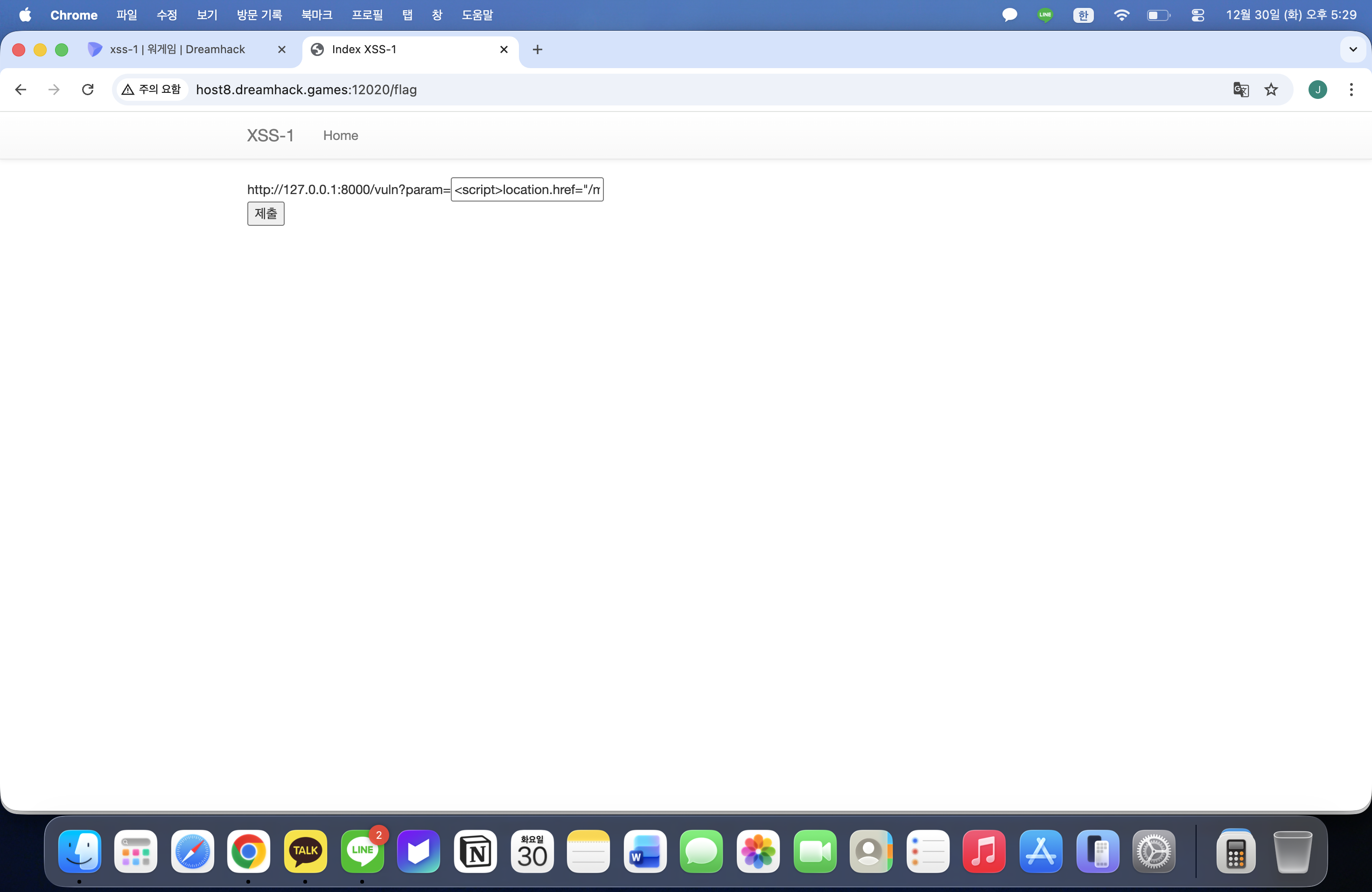 가장 위에 링크를 클릭했을때, 위와 같은 화면이 나타난다. /vuln은 값을 다른 검증없이 그대로 출력함을 확인할 수 있다.