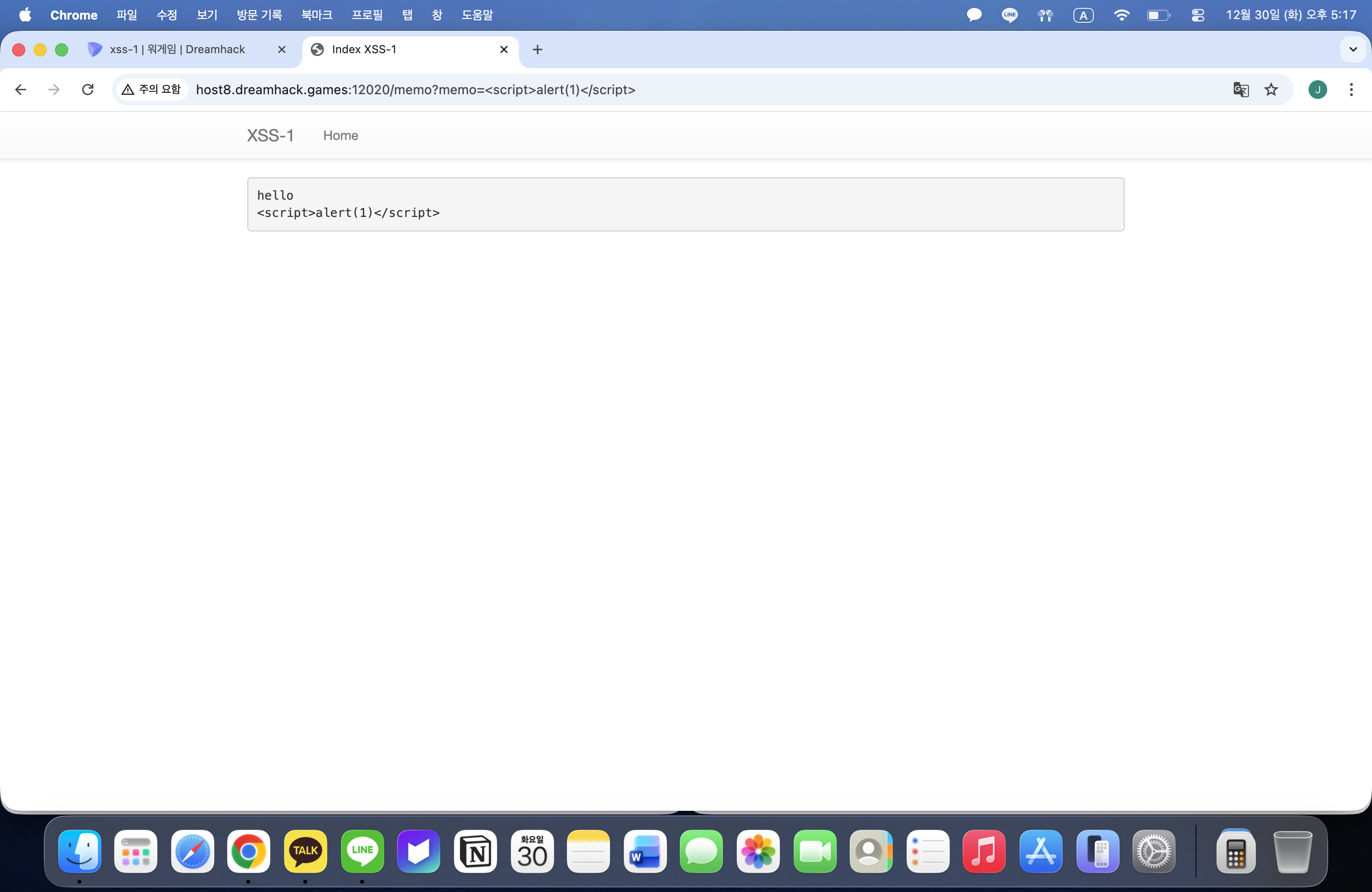 다시 이전화면으로 돌아가 두번째 링크를 눌러본다. 위 코드에서 render_templete은 값을 화면에 표시하는 역할을 한다. <script>alert(1)</script>를 url에서 memo 뒤에 넣어보았을 때, 작동을 하진 않고 문자열로 출력되는 것을 확인할 수 있다.