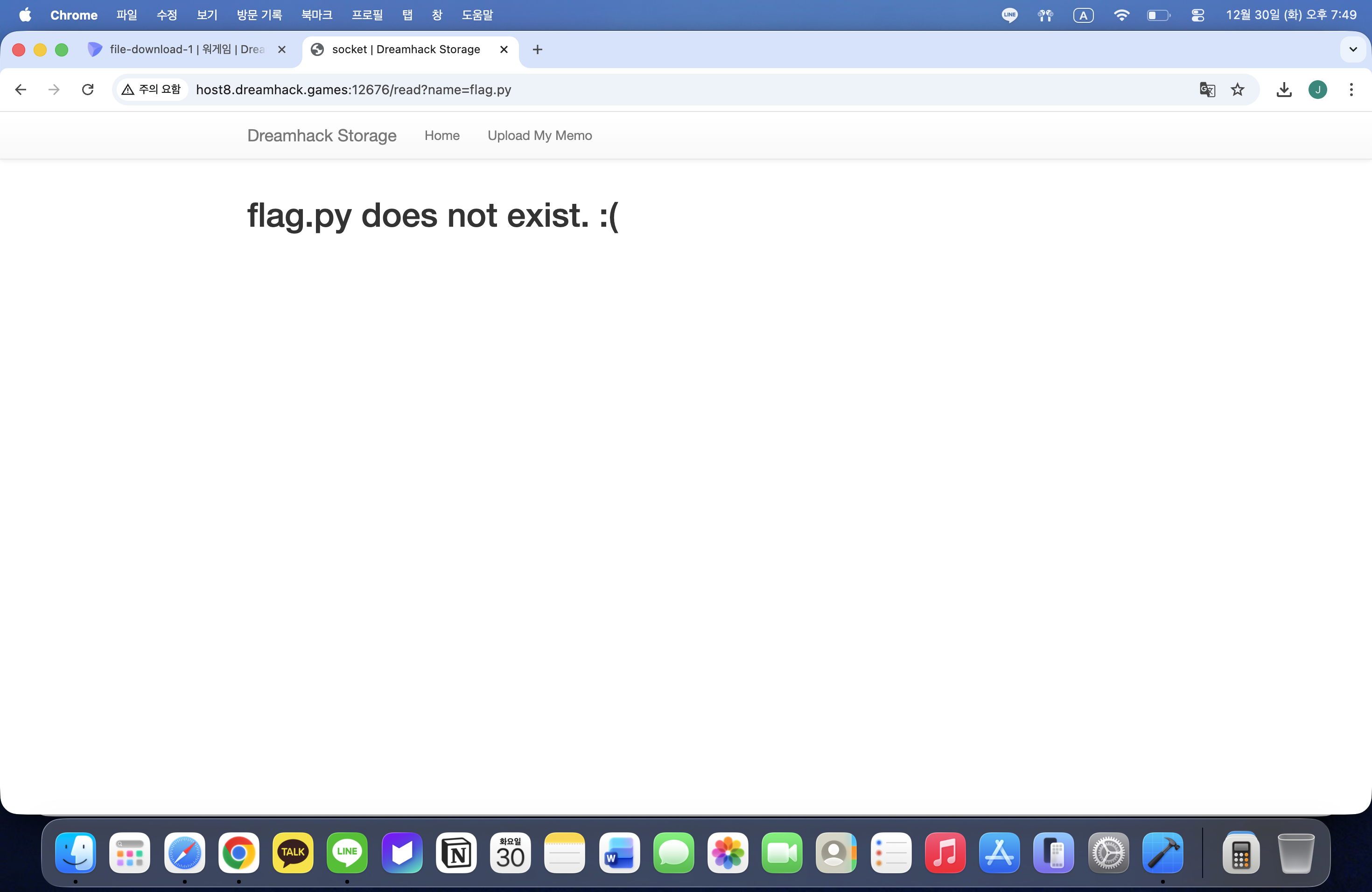 File Download 취약점이 존재하는 웹 서비스이고, flag.py를 다운로드 받으면 플래그를 획득할 수 있다는 내용을 확인한다.