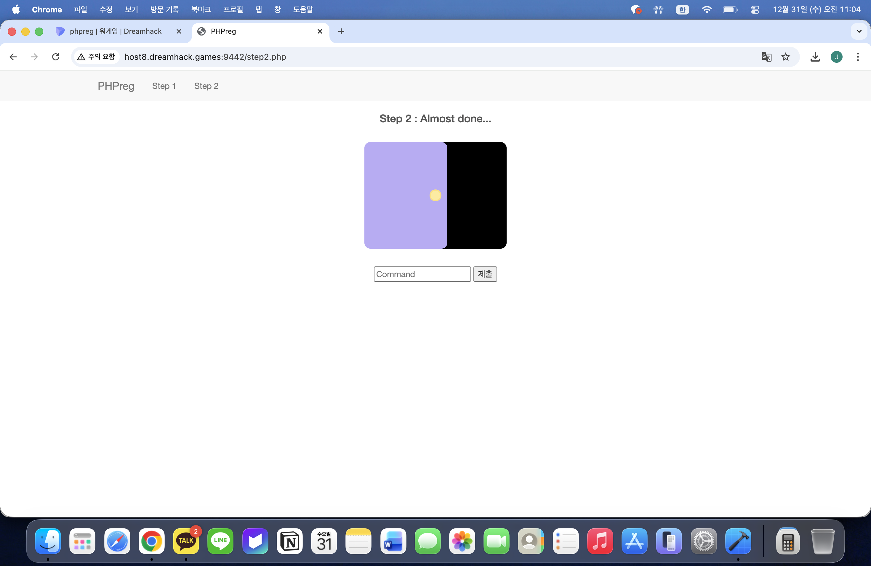 실제로 입력해보면 정상적으로 Step 2로 넘어간 것을 확인할 수 있다. Step 2는 command를 입력하면 작동하는 구조이다. ../dream/flag.txt를 찾으면 되는 문제이니, 파일을 읽을 수 있는 cat명령어를 사용하면 될것 같다.