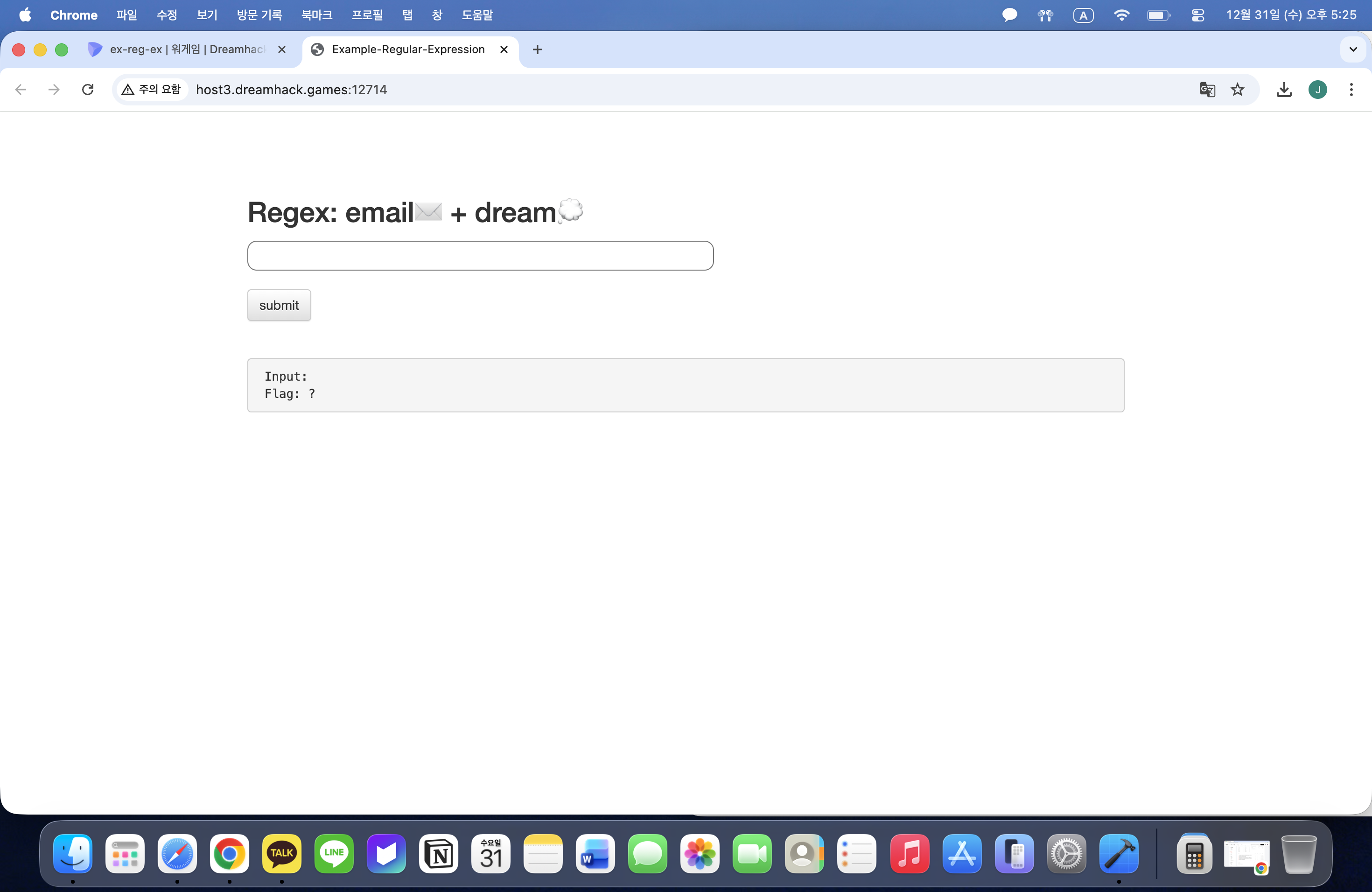 간단하게 문제에서 요구하는 형식(아무래도 정규표현식 내지 조건문 일 것 같다.)의 문자역을 입력하여 플래그를 획득하면 되는 문제이다.