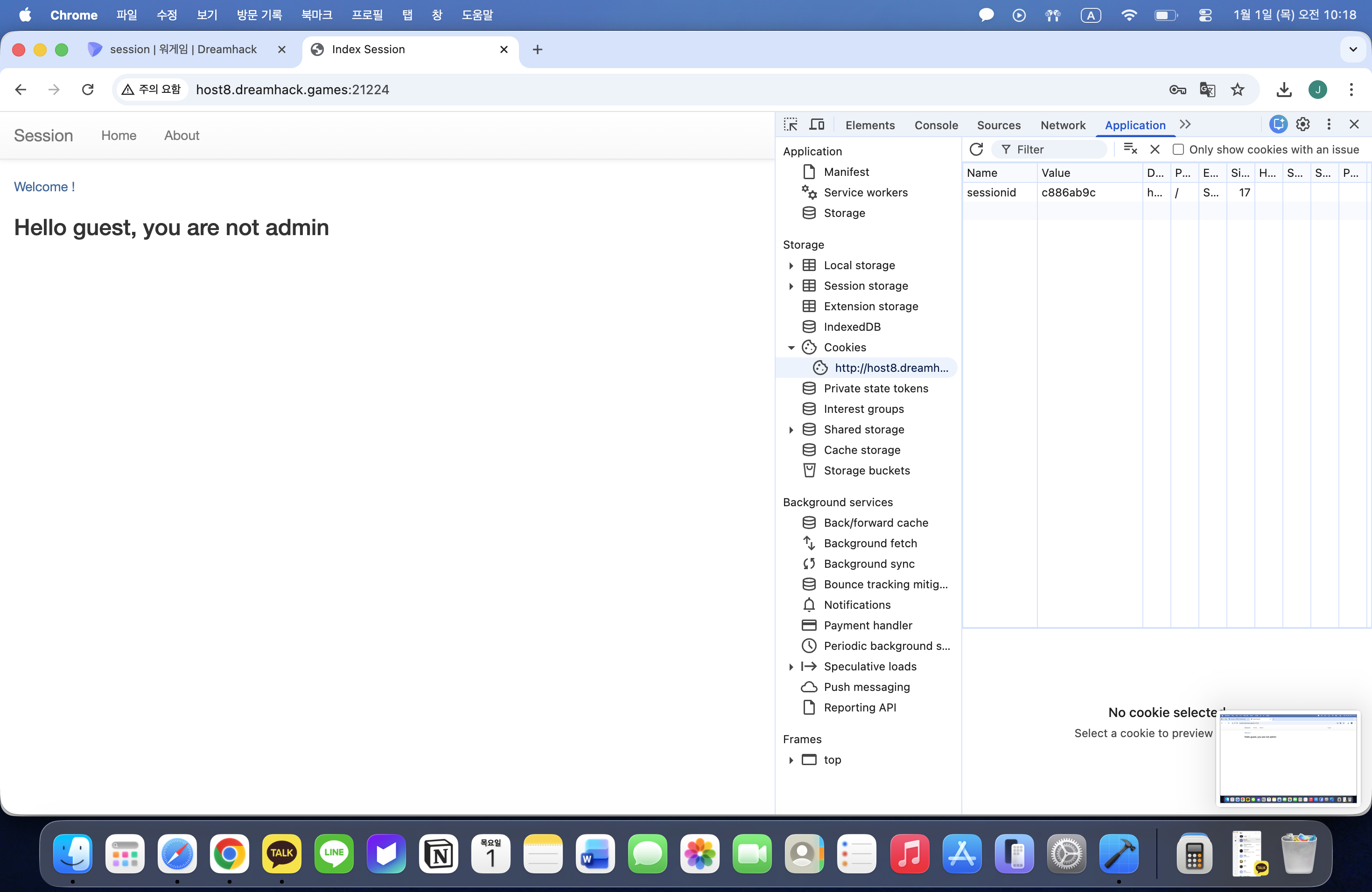 session id의 value를 f4로 변경해주고 새로고침하면, 위와 같이 정상적으로 flag가 출력됨을 확인할 수 있다.