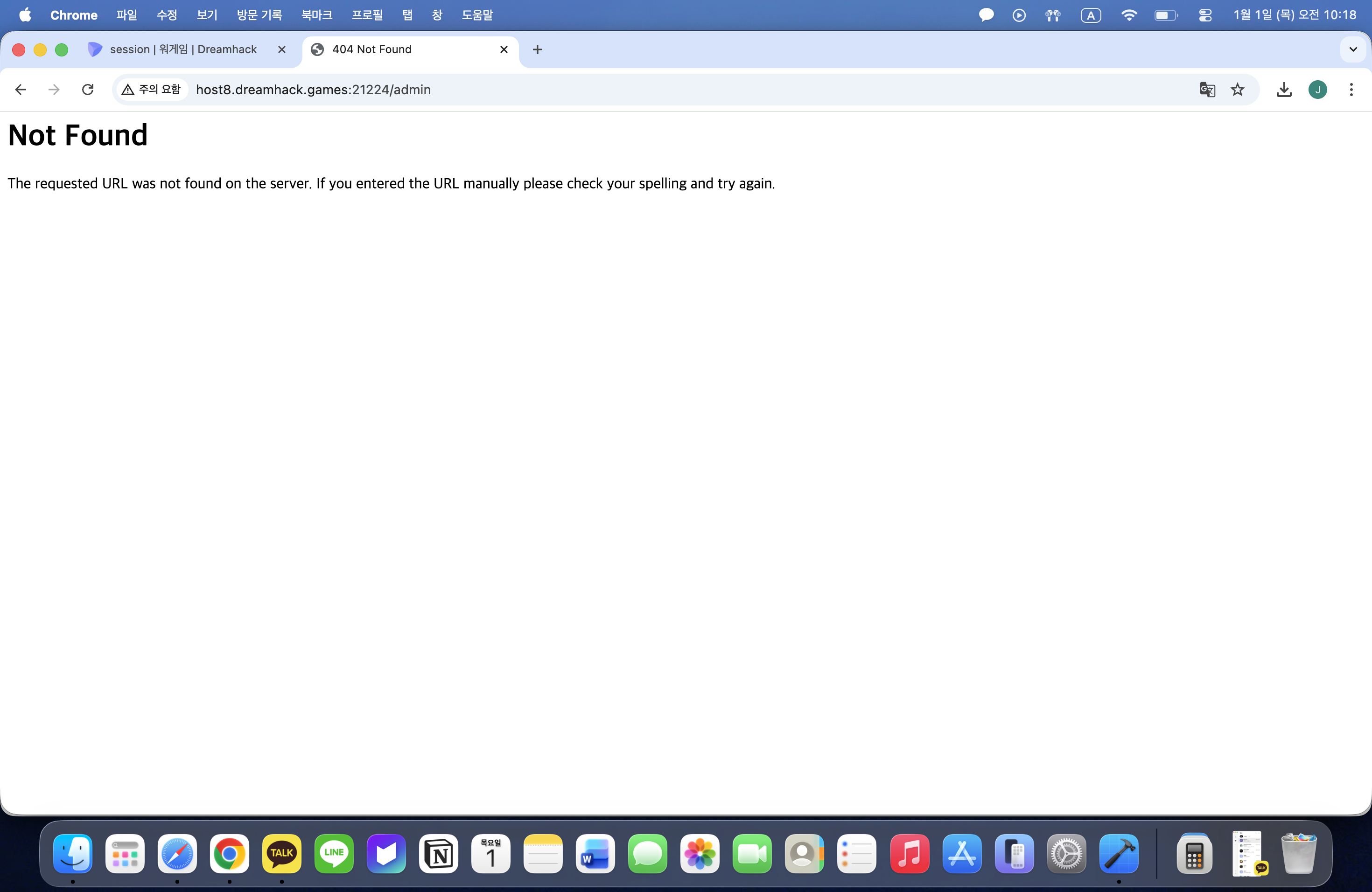 혹시 모르니 저번에 풀어본 session-basic처럼 /admin 경로에 힌트가 있을까 했지만 역시나 없었다. urandom(4).hex가 16진수로 8자리를 나타내는 무작위 문자열이니, urandom(1).hex는 16진수 2자리, 즉 256가지 중에 하나라고 생각이 든다. 이는 Burp Suite라는 툴을 이용하여 간단히 Brute force로 해결될 것으로 판단된다.