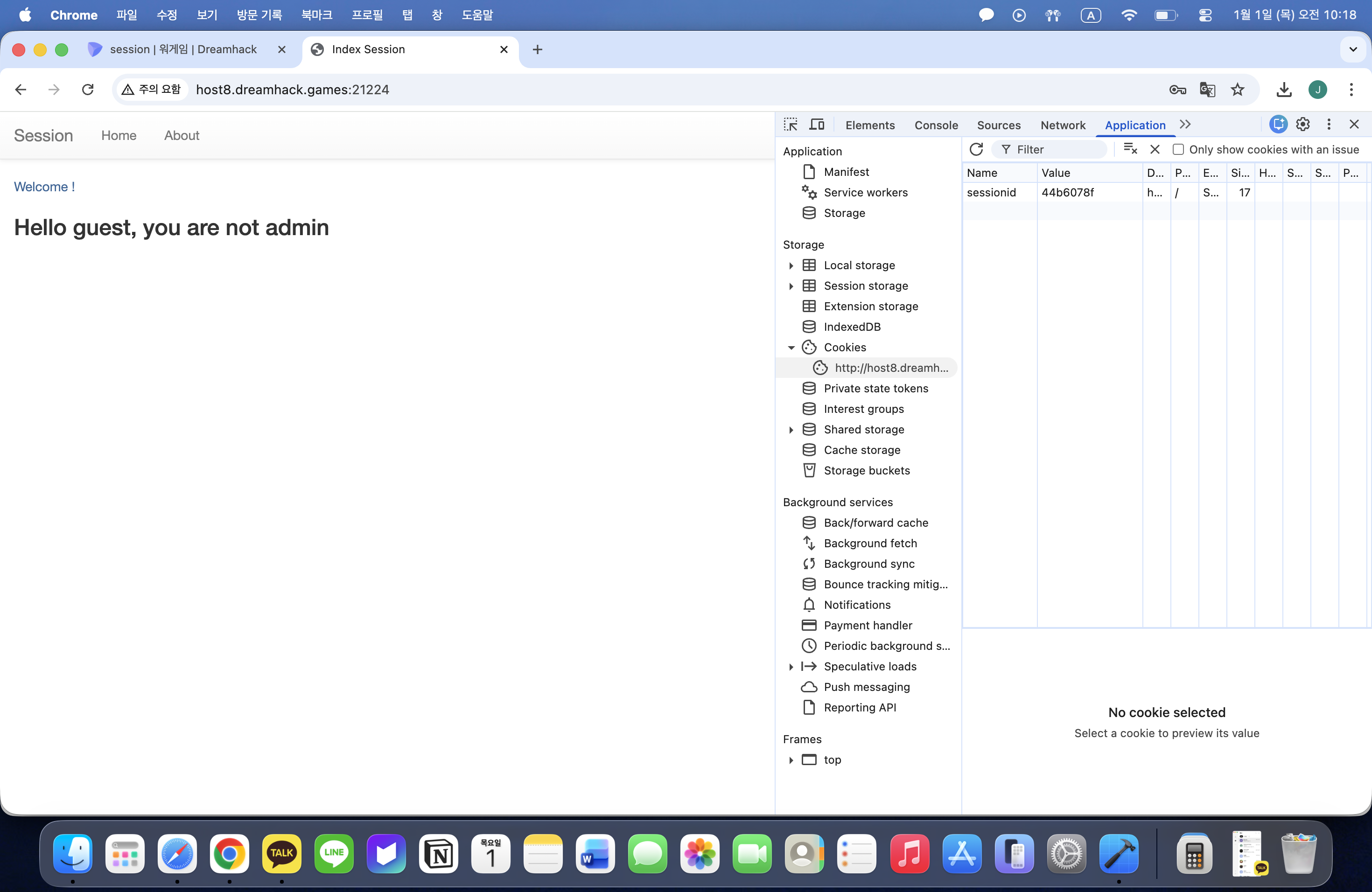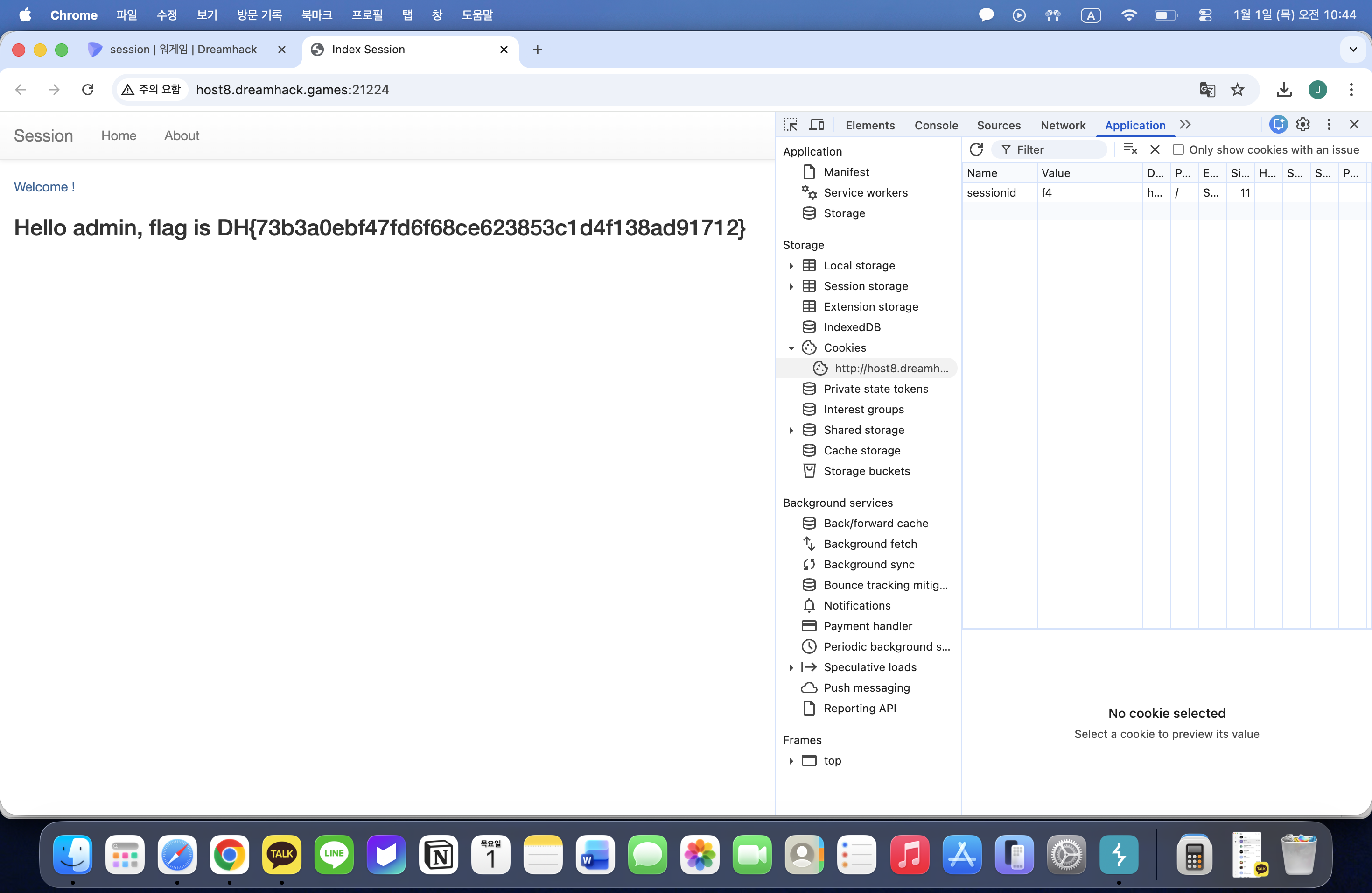 session id의 value를 f4로 변경해주고 새로고침하면, 위와 같이 정상적으로 flag가 출력됨을 확인할 수 있다.