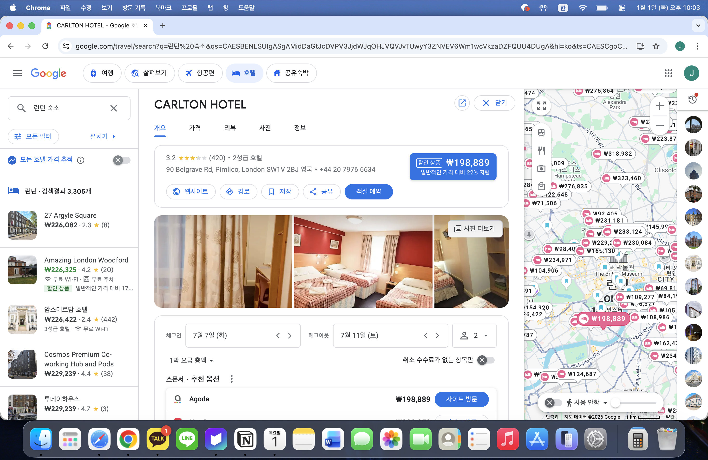 이것저것 찾다보니 위치도 핌리코쪽으로 나쁘지 않고, 가격도 박당 110달러 내외에 평들도 다들 나쁘지는 않은 편이여서 이 숙소로 결정하게 되었다. 런던 숙소 하나 알아보는데 시간이 꽤 걸렸는데, 파리나 스위스는 어떻게 알아봐야할지 막막하긴 하다 ㅋㅋ....