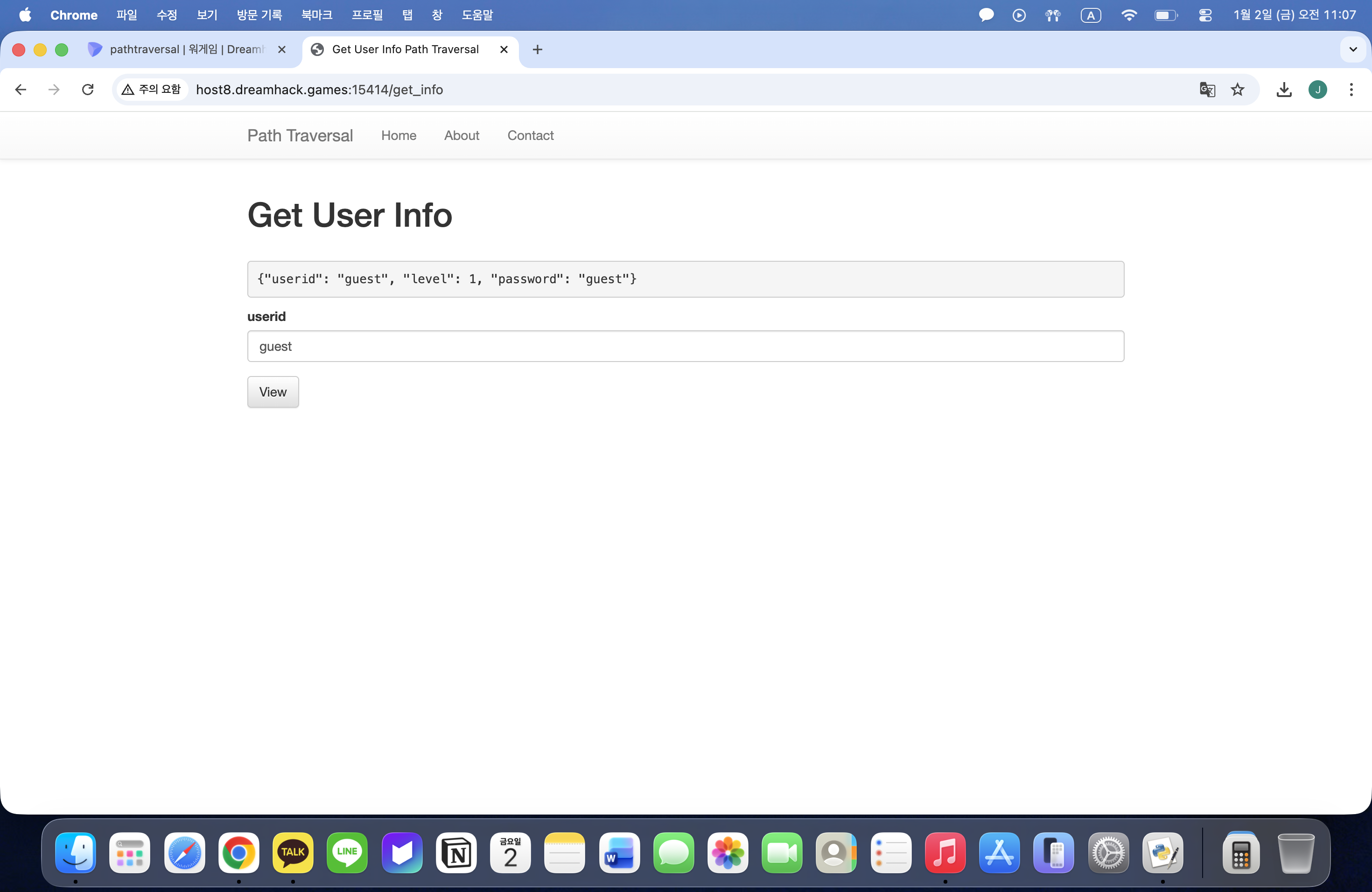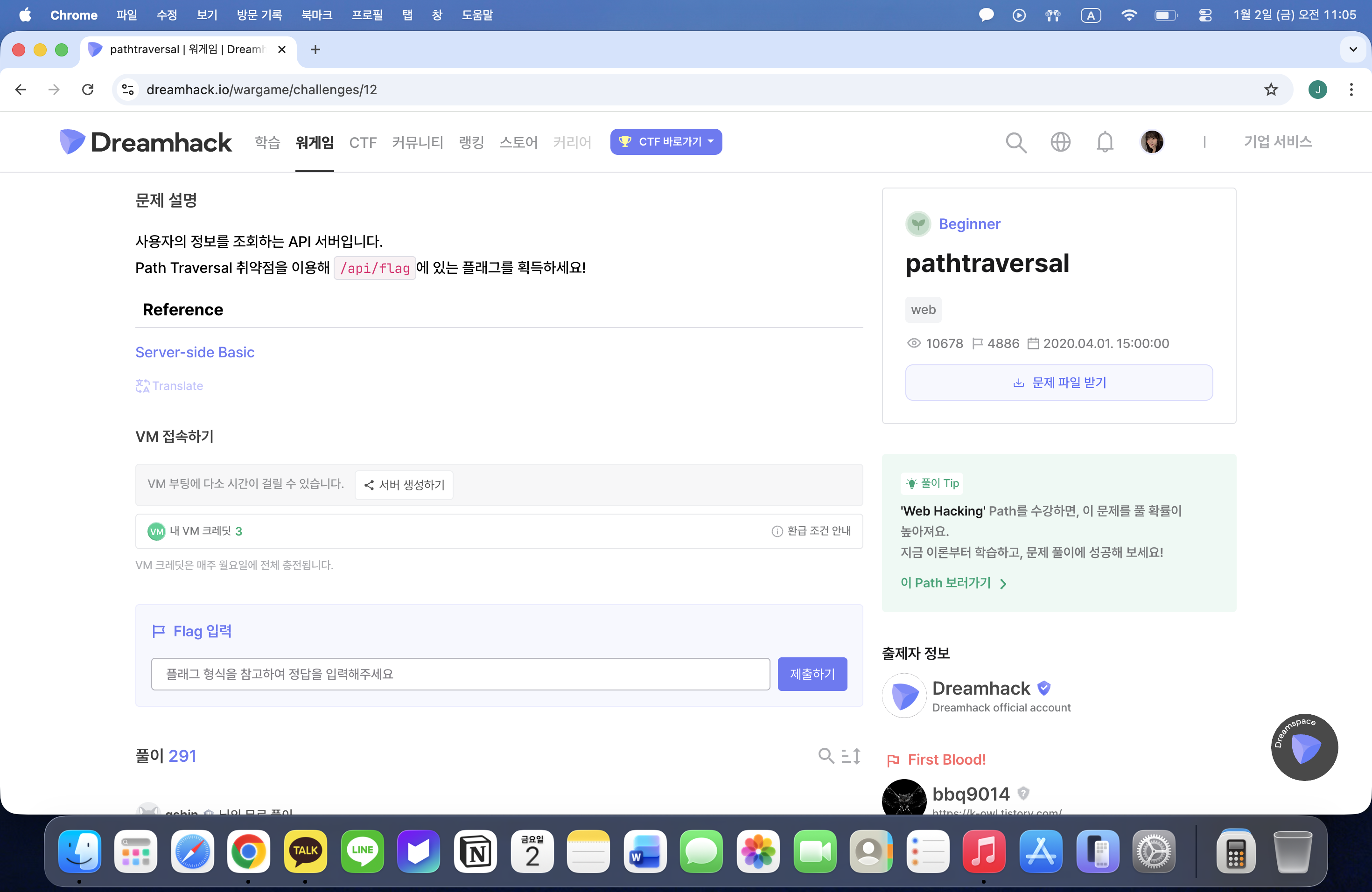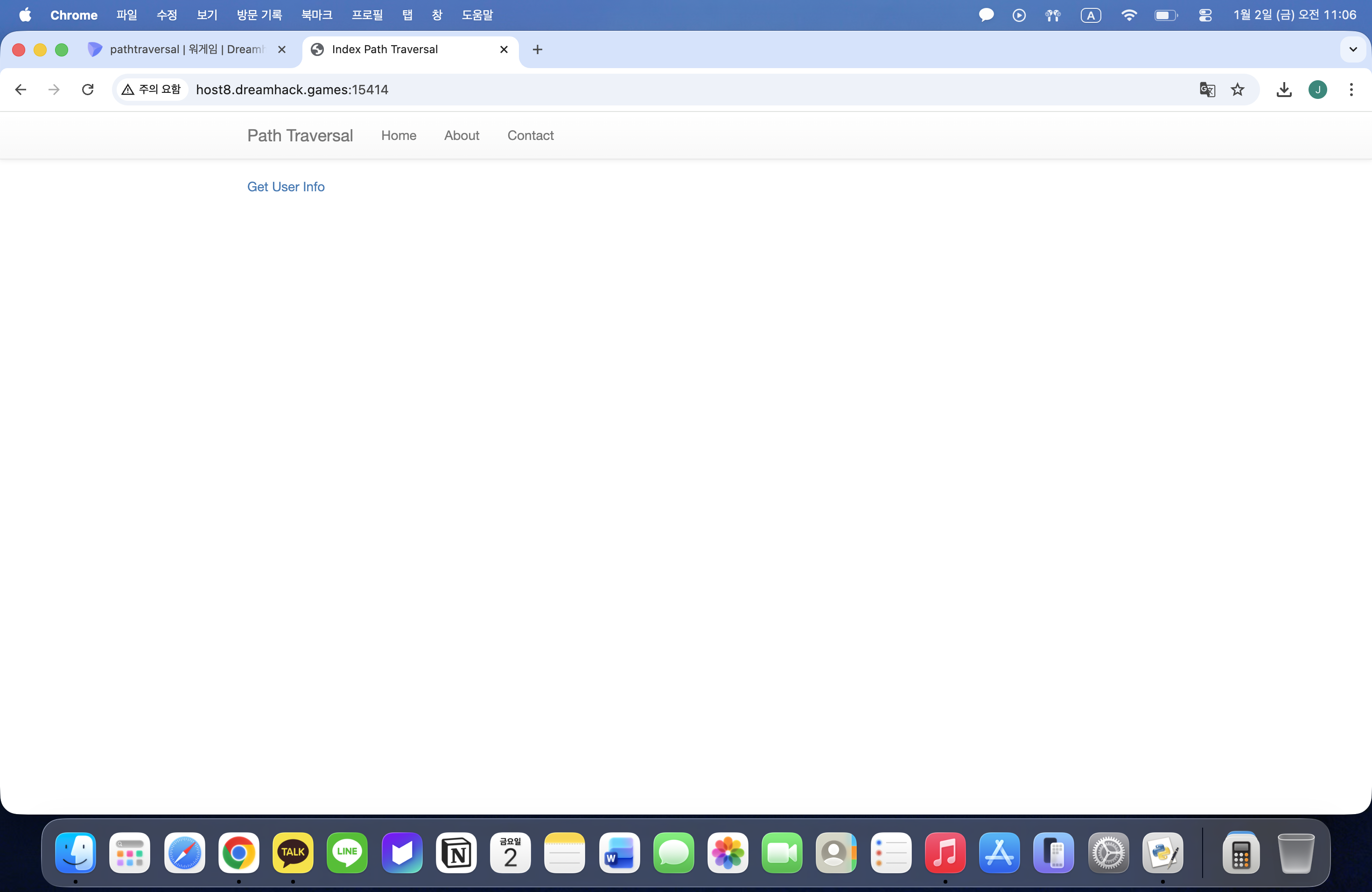 path traversal 취약점을 통해 /api/flag 경로에 있는 flag값을 획득하면 되는 문제다. path traversal은 취약한 특정 부분에 경로를 대입하여 서버 내부의 파일에 접근할 수 있는 취약점이다.