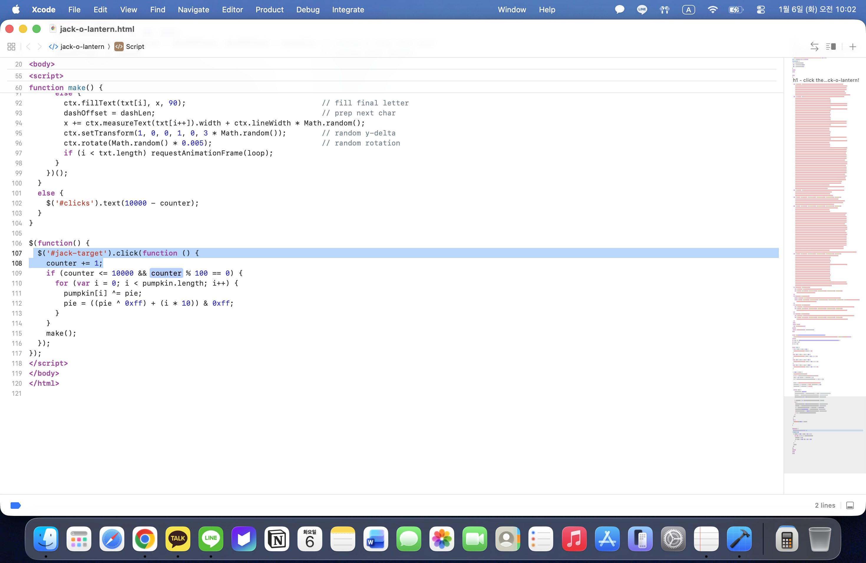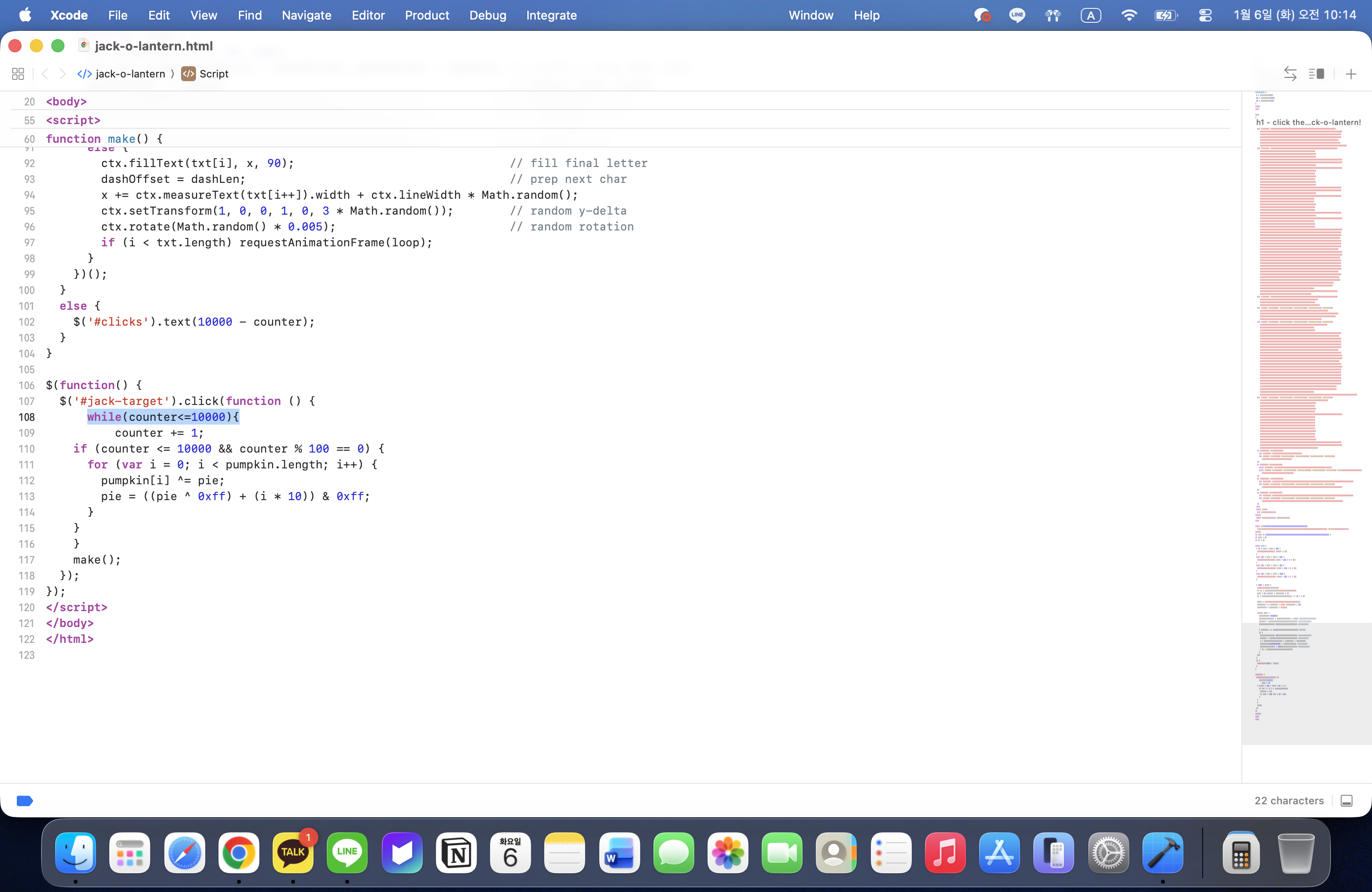 4번정도 클릭해봤을때 숫자가 줄어든다. 푸는 방법이 여러가지 일것 같은데, 직접 1만번 클릭부터 오토마우스, 클릭할때 1000개정도씩 감소하게 만들어서 10번 정도 누르거나 반복문으로 저 변수의 값을 바꿔주는거. 가장 마지막이 맞을것 같다.