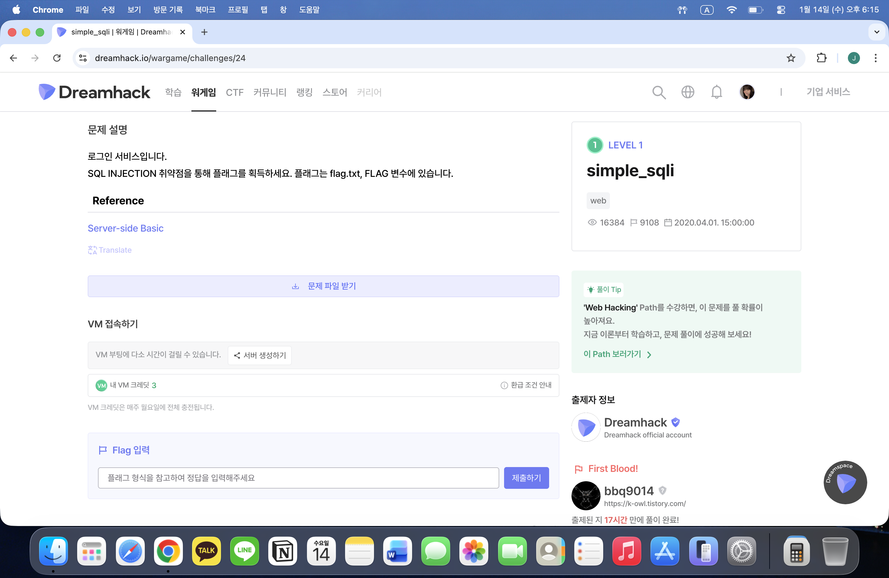 SQL Injection 취약점을 이용하여 Flag 값을 획득하면 되는 문제이다.