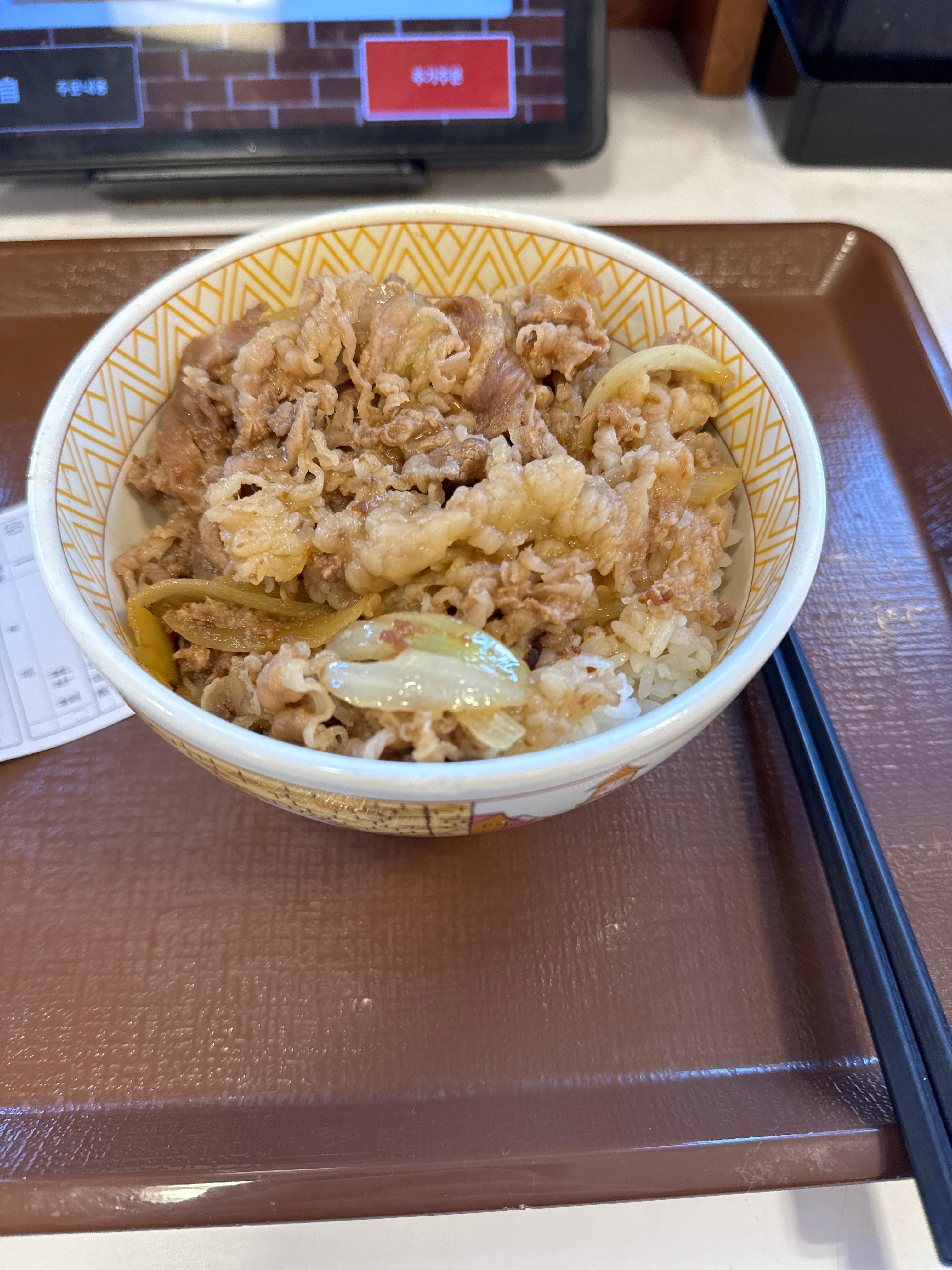 원래 보통 호텔에서 제공되는 조식을 먹거나 전날에 마트에서 빵정도 간단하게 사두는 편이지만, 어제는 너무 귀찮아서 그냥 숙소 근처에 규동을 먹으러 갔다. 미소시루 주는 마츠야를 선호하는 편이지만, 놀랍게도 나가사키에는 마츠야가 하나도 없다.