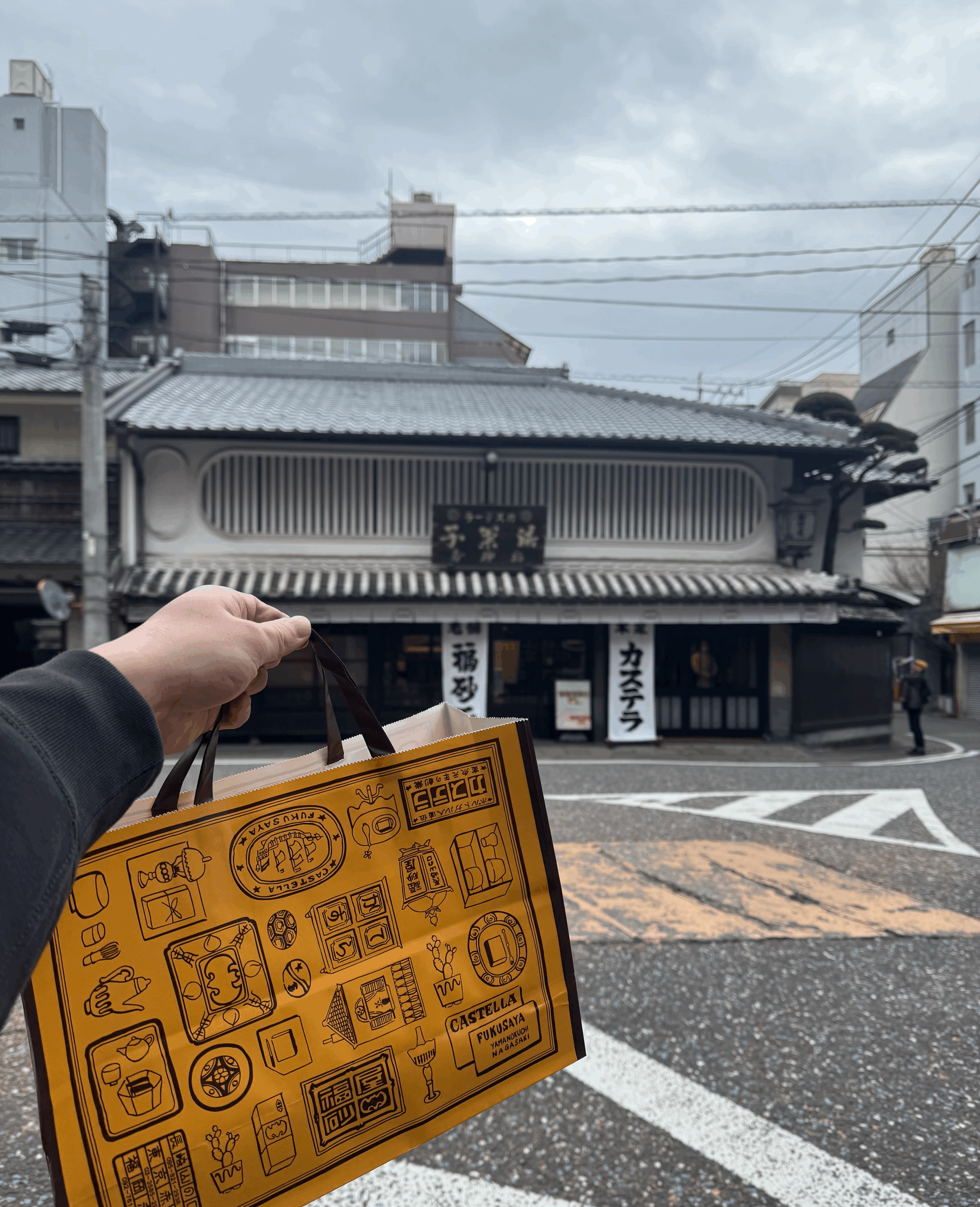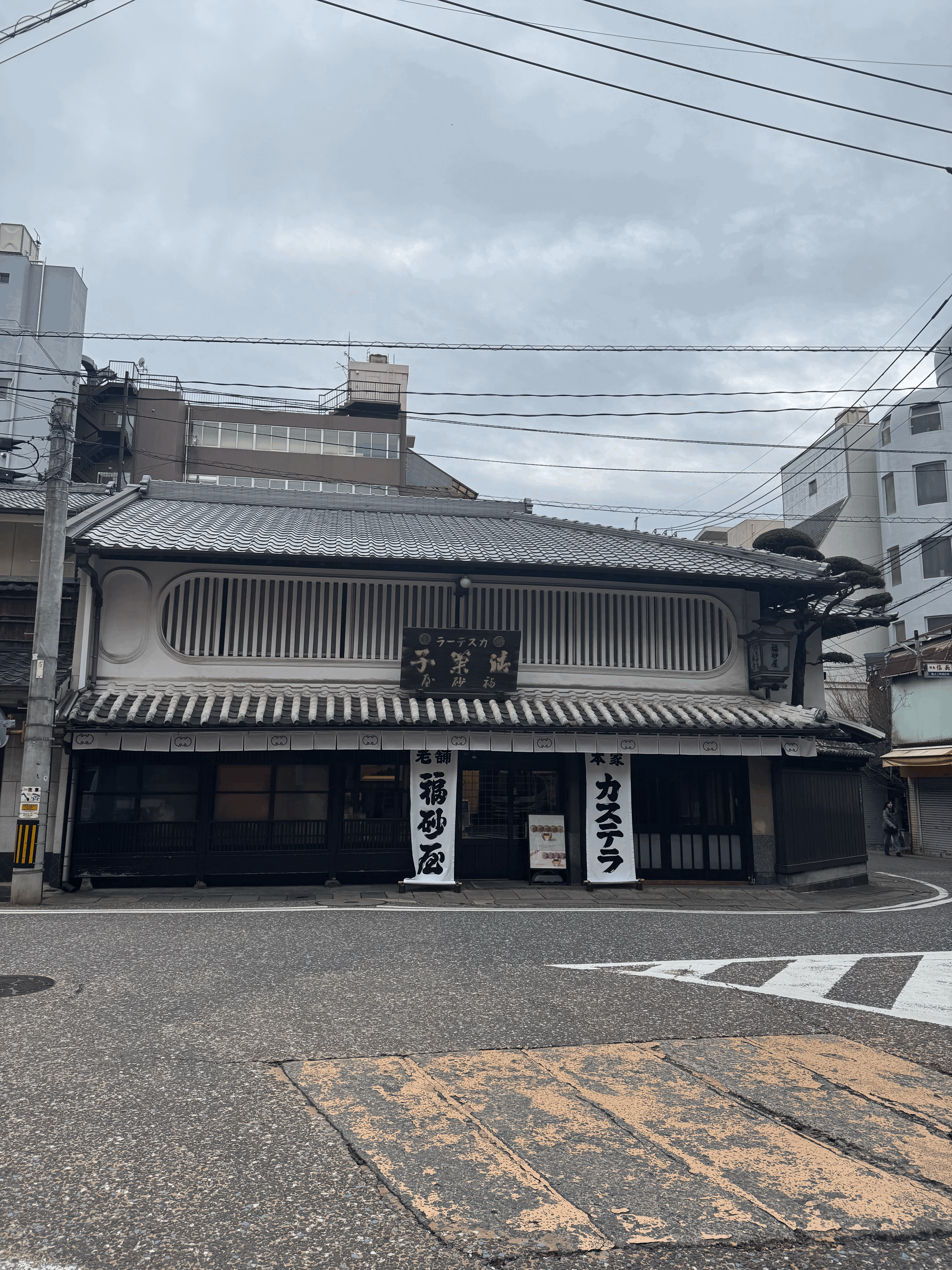 짬뽕을 먹고, 소화도 시킬겸해서 카스테라를 사러 갔다왔다. 아까 갔던 하마노마치에도 있지만, 후쿠사야 본점이 재작년에 개업한지 400주년이 되었다길래 한번 방문해보았다. 1호를 구매하였는데, 1호 가격은 대략 2만원 언저리. 안에 들어갔더니 줄은 딱히 서진 않았지만 일본인 아저씨 한분도 다른 지역에서 왔는지 상당히 기대하는 표정으로 기다렸고, 둘이 같이 카스테라를 받고 나가서 아저씨랑 열심히 이것저것 사진을 찍었다.