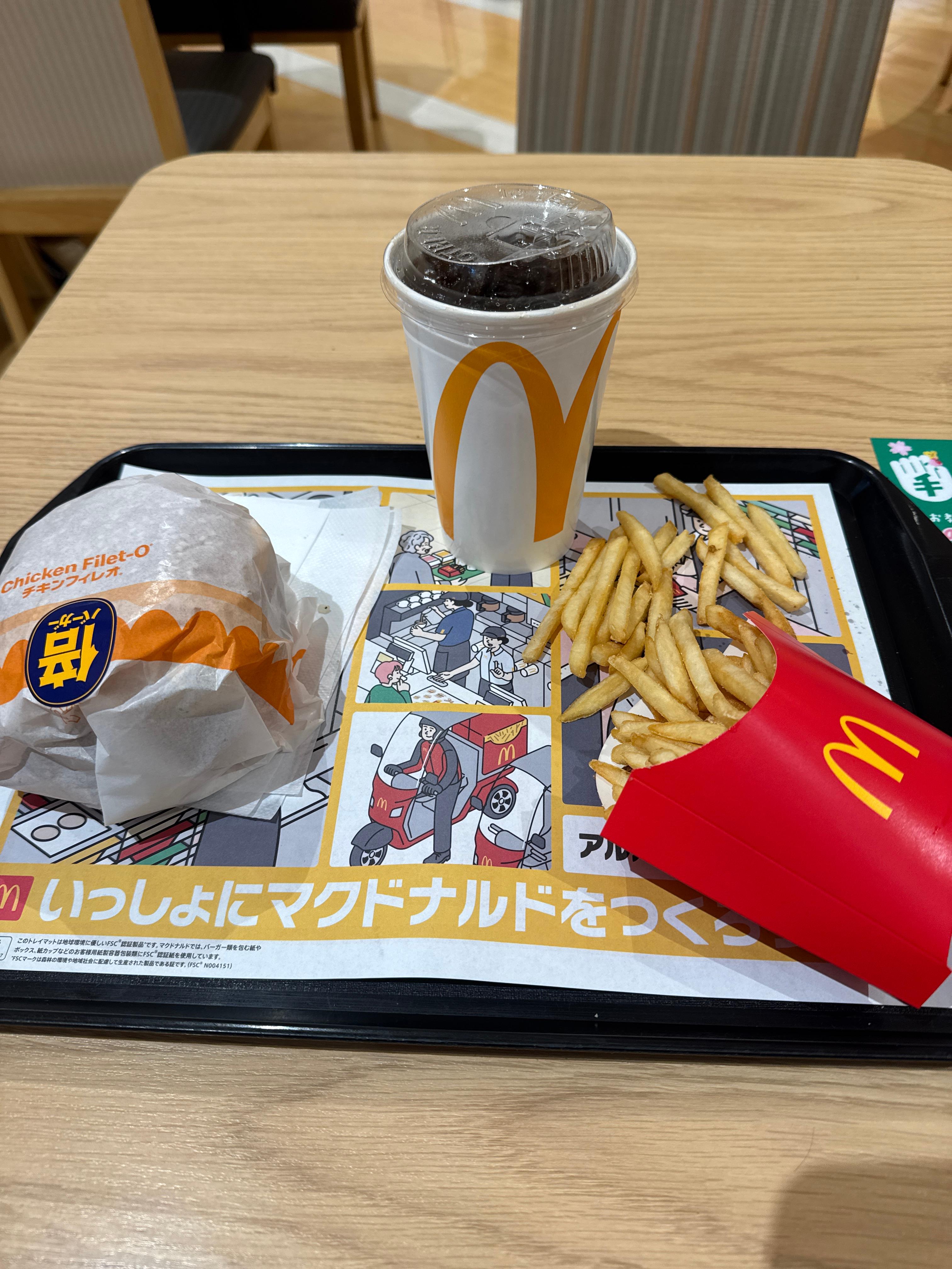 사실 이번에 일본오면서 애타게 찾고 있던게 있다. 바로 타케노코 맥플러리인데, 놀랍게도 나가사키 시내 맥도날드 3곳에는 전부 타케노코 맥플러리를 팔지 않는다(결국 후쿠오카 가서 먹긴 함.). 그래서 그냥 체념하고 맥도날드 치킨 필렛-오를 하나 시켜먹었다. 맥도날드를 좋아해서 일본오면 꼭 한번씩 맥도날드에 들려서 먹고 가는거 같다.