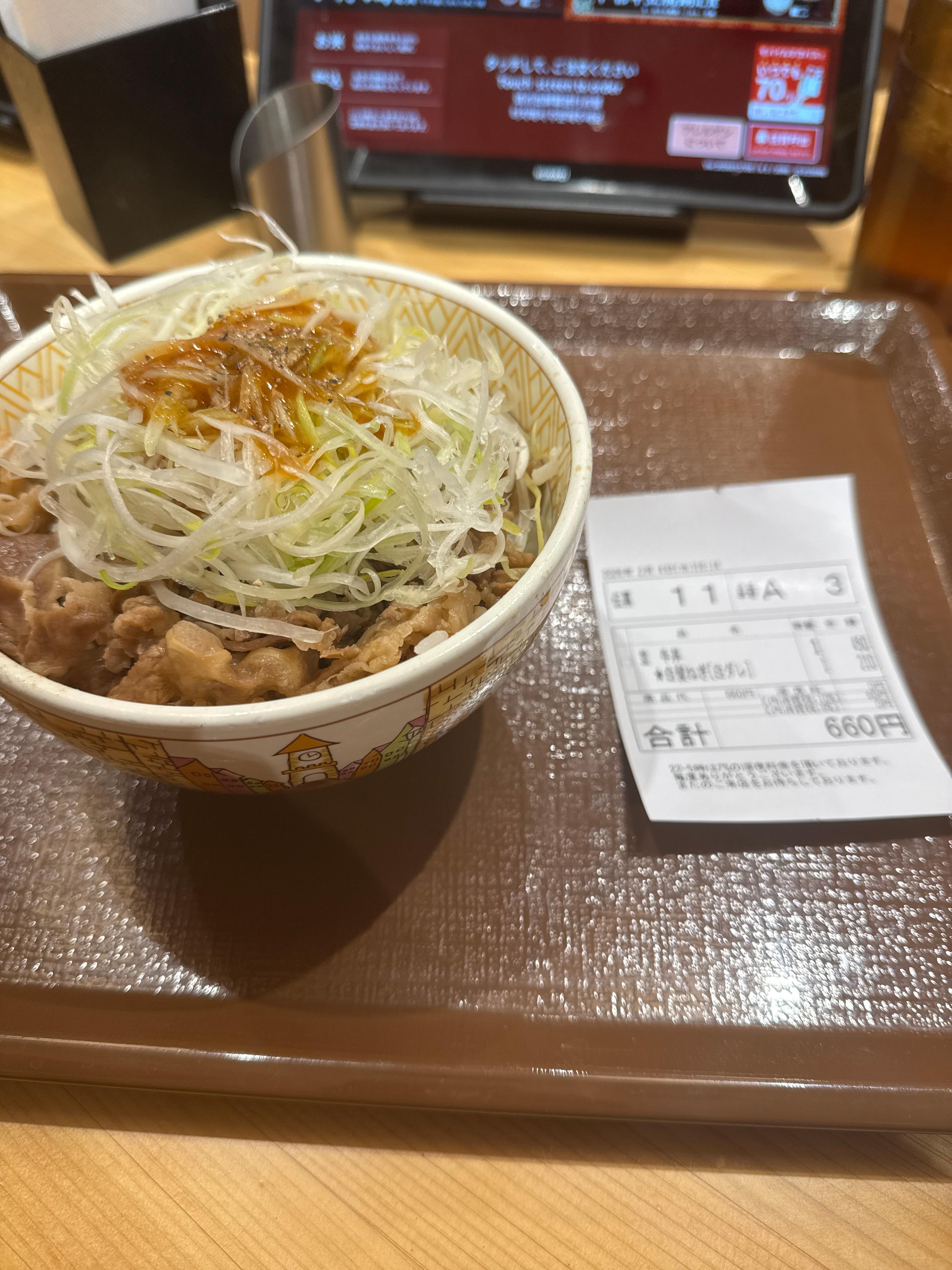 그리고 마츠모토까지 특급 시나노로 갈아타서 2시간 정도 더 가서 도착하였다. 머리가 너무 아파서 약먹고 숙소에서 좀 졸다가 스키야에 들러서 여러가지 추천받았지만 스키야에서 1000엔 이상 쓰고 싶진 않아서 간단하게 파채규동 먹고 하루가 끝났다.
