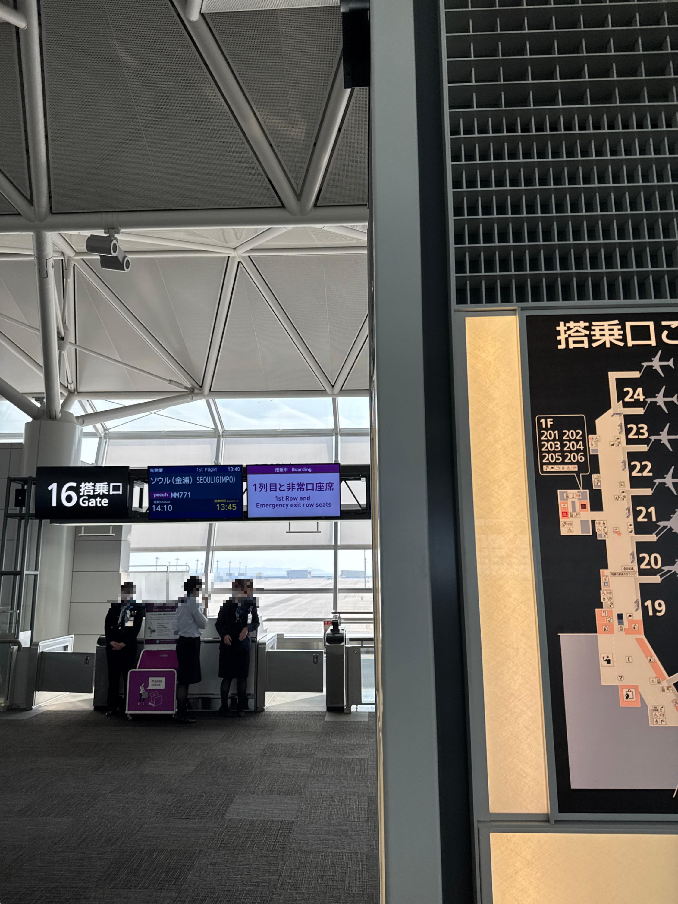 돌아가는 비행기 역시 탑승하였다. 16번게이트에서 탑승하였고 13시 45분부터 탑승하였는데, 김포에서와 다른점은 존별로 나누어서 탑승하였다. 도움 필요 승객이 1등, 1열 및 비상구가 2등, 16열 이후가 3등, 그 외가 4등순이였다. 게이트 앞에서는 따로 수하물 무게를 체크하지는 않았다.