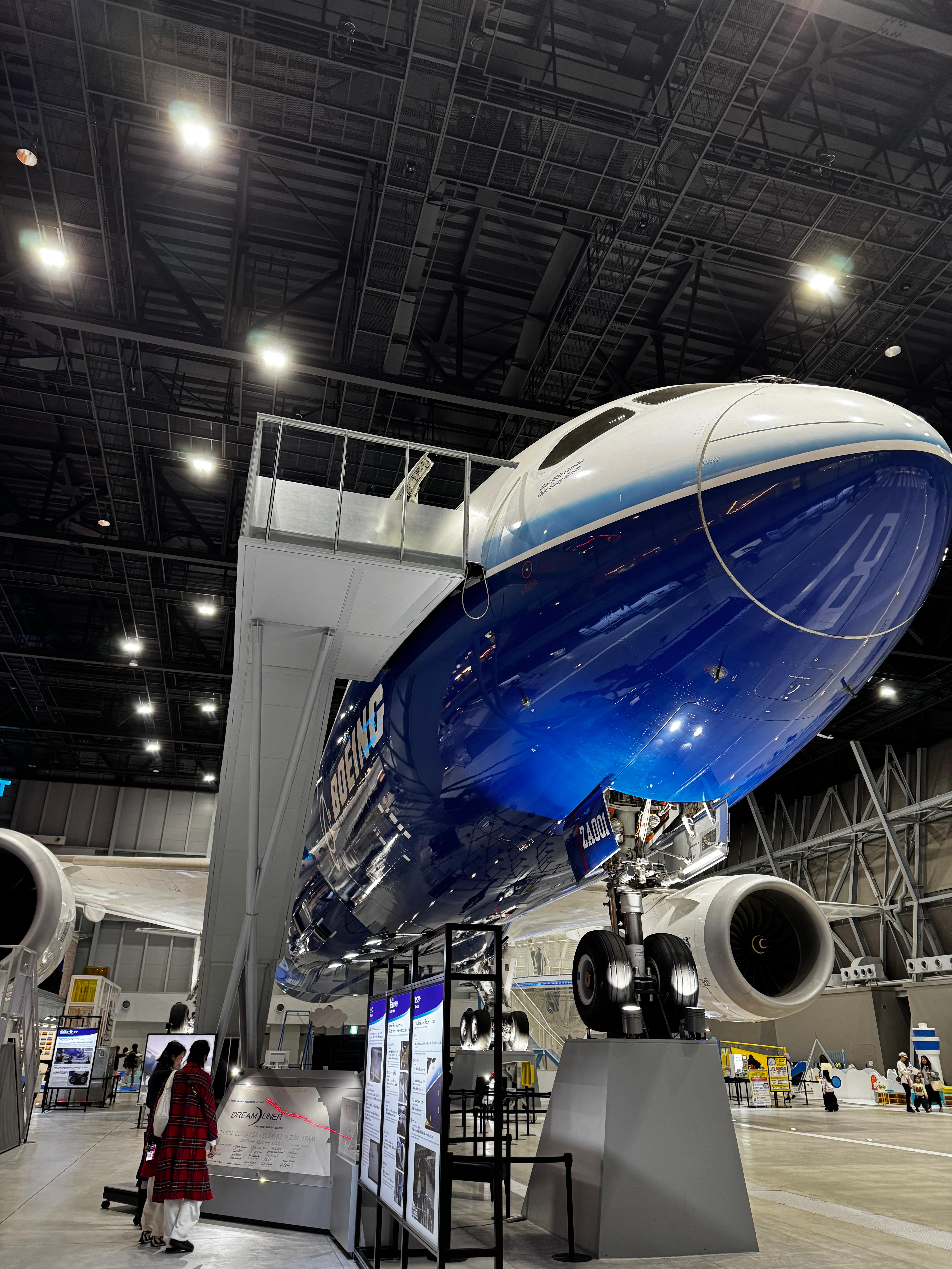 보잉 787 시제기(N787BA)이다. 칵핏도 3분이란 시간 동안 둘러볼 수 있게끔 되어있다. 2층과 3층에는 식당들도 있다.