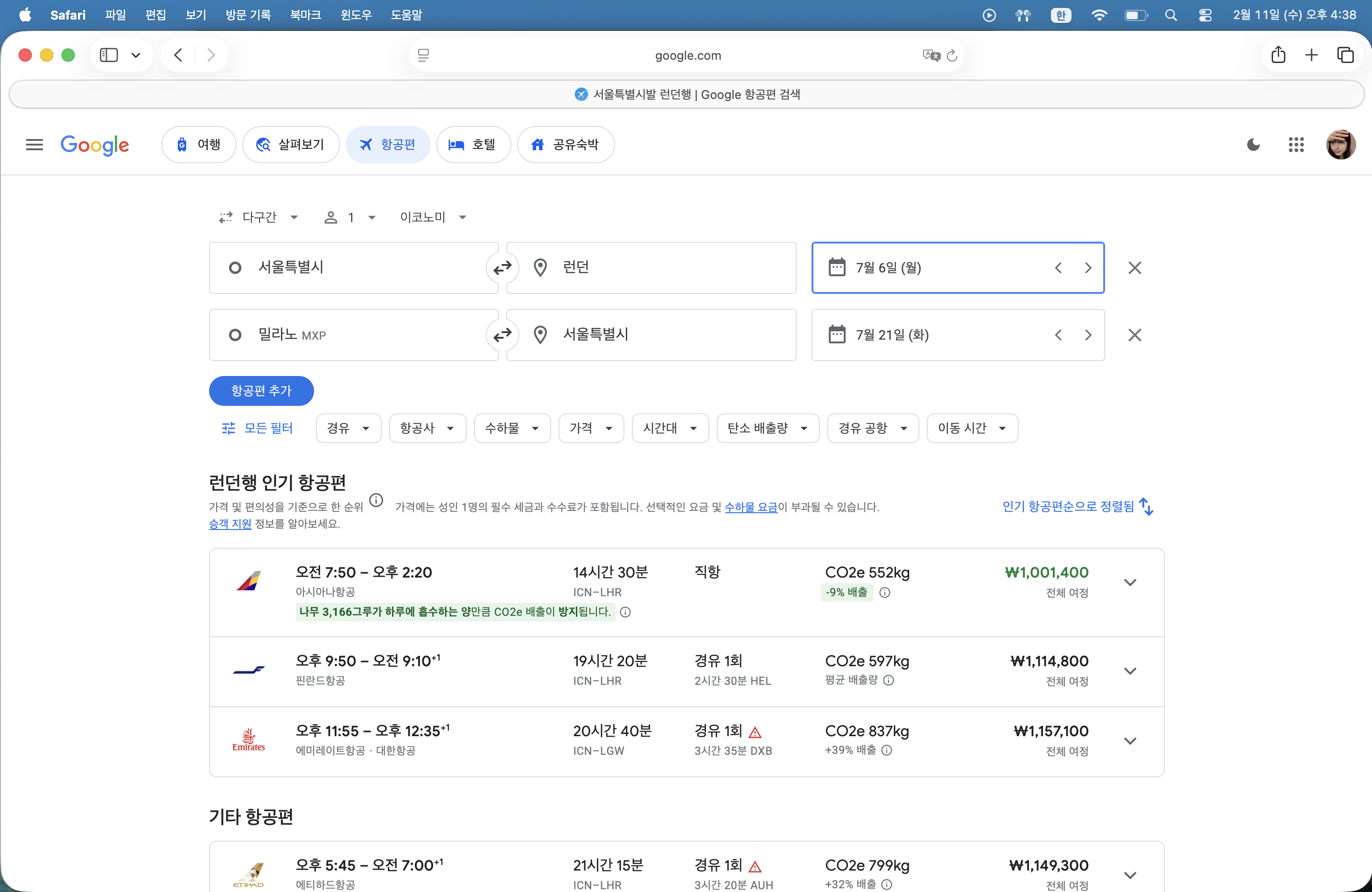 7월달이면 방학 시즌인데 직항에 99(원래는 95)정도에 구했으면 정말 나쁘지 않은 가격이라고 생각한다. 유류할증료의 대폭 인하와 아시아나 밀라노 신규 취항 이벤트등 이것저것 겹쳐서 이 가격(2월 11일 기준 93만원 언저리)이 나오는거 같다. 항공권은 한번 잡으면 그 뒤로는 신경쓰지 말아야하지만 10만원 인하는 못참기 때문에 ㅋㅋ... 주기적으로 80만원선까지 떨어지나 체크하는것 같다(80까지 떨어지면 취소하고 다시해도 이득이다.).