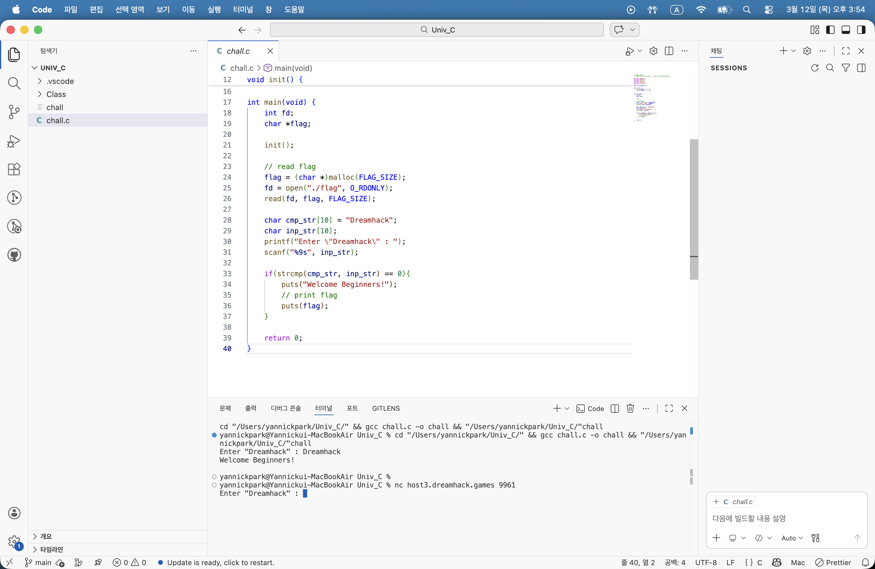 먼저 주어진 clang 파일을 실행시켜서 Dreamhack이라고 입력했을때, 코드가 작동하는지 확인하였다.